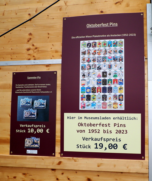Seit 1952 veranstaltet die Landeshauptstadt München den Wettbewerb für das Oktoberfestplakat. Das Sieger-Motiv ist auf Plakaten, Online-Kanälen, dem offiziellen Sammlermaßkrug und vielen weiteren Artikeln zu sehen. Im Museumszelt wird die gesamte Plakatreihe präsentiert – ein visueller Rückblick auf über 70 Jahre Wiesngeschichte. Im „Museumsladen“ sind Nachdrucke von 1952 bis 2017 für nur 12 Euro erhältlich, dazu passende Pins für 19 Euro.
